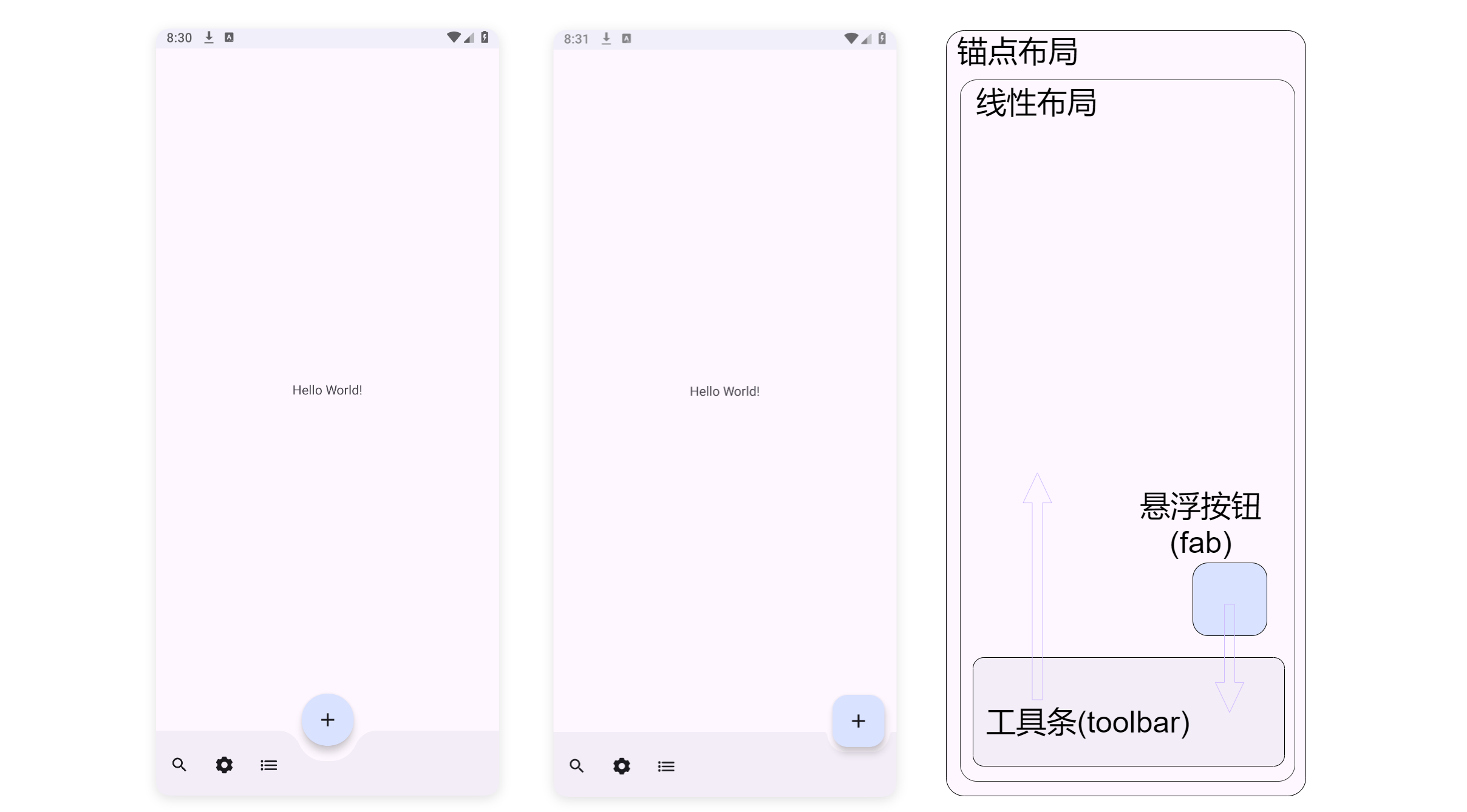 然而(toolbar)工作条能够专门和(fab)悬浮按一起联动,实现凹陷的效果。